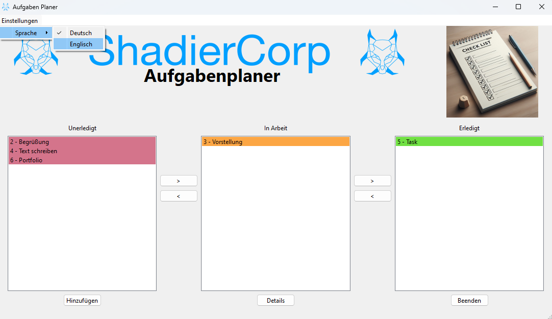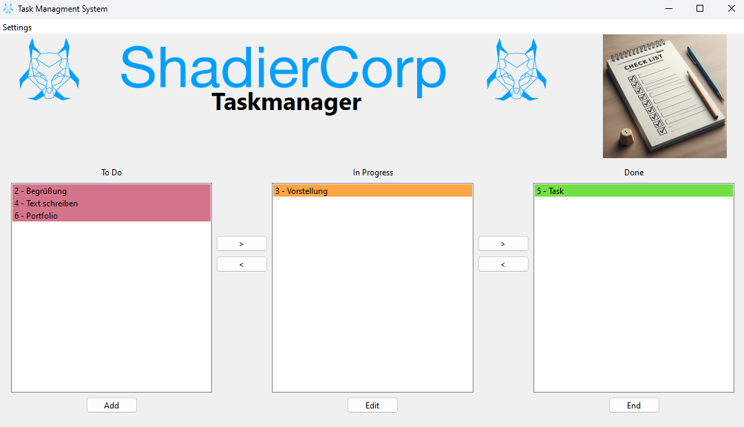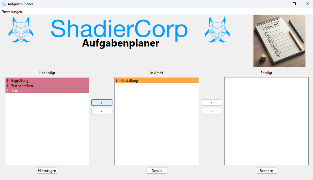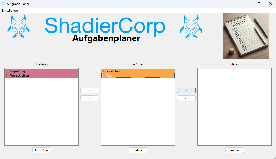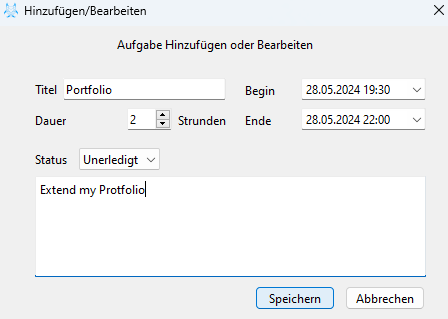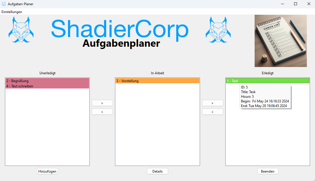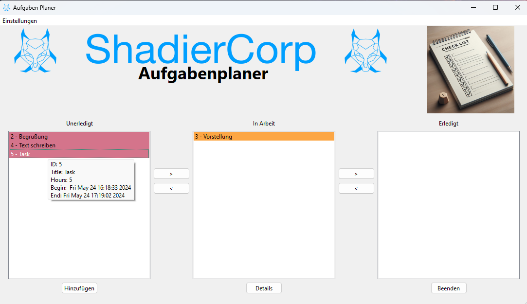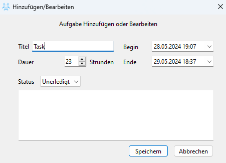 - The start Date and Time is automatically set, if you move a task from "Unerledigt" to "In Arbeit".